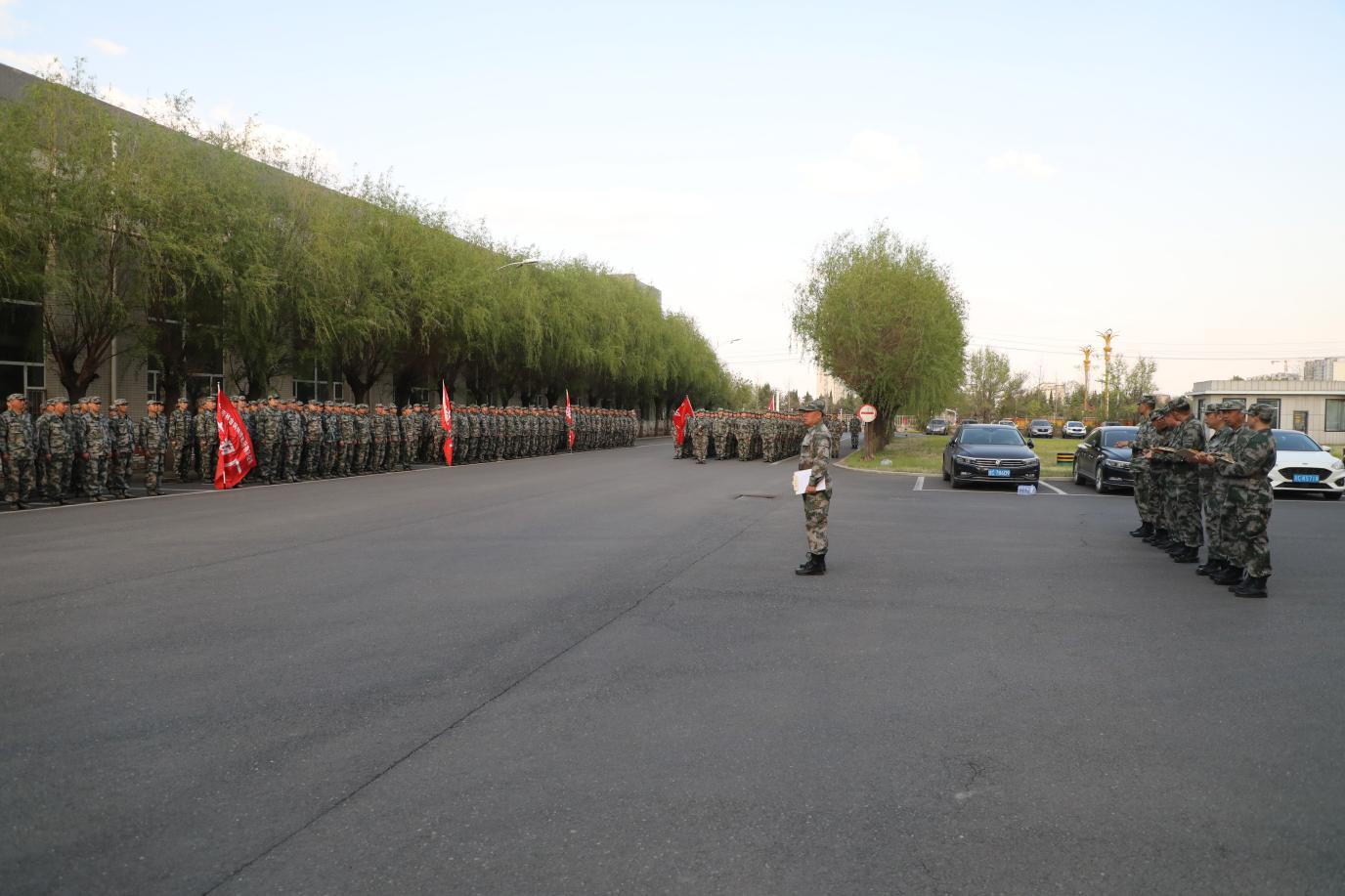 風(fēng)輕云淡,傍花隨柳。5月7日金鋼股份全員軍訓(xùn)在盎然春意中拉開帷幕。千余名員工在以大地為訓(xùn)練場,與春風(fēng)同行,與綠柳共舞,在嚴(yán)格的軍事化訓(xùn)練中錘煉意志,在自然的懷抱中凝聚合力。
